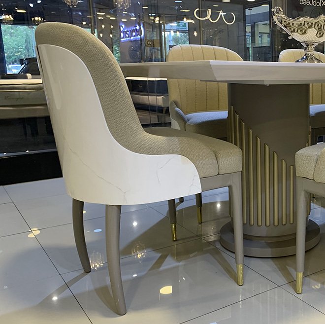 La Silla de Comedor Marcus mezcla sofisticación y confort con su diseño personalizable, patas en color taupe y acabados en bronce o acero. Perfecta para quienes valoran el estilo y la calidad.